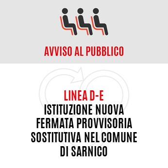 Si comunica alla clientela, a partire da lunedì 1 febbraio 2021, la fermata in via Suardo in comune di Sarnico (direzione Bergamo) verrà interessata da lavori di sistemazione.