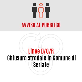 linee D/Q/R – Chiusura stradale in Comune di Seriate.
