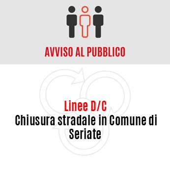 Si comunica alla Clientela che causa manifestazione, domenica 26 ottobre 2025 dalle ore 07.30 alle ore 21.00, sarà chiusa al traffico Via Italia in Comune di Seriate.